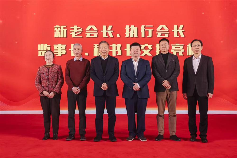 • 商会新老会长、监事长、秘书长上台进行交接亮相