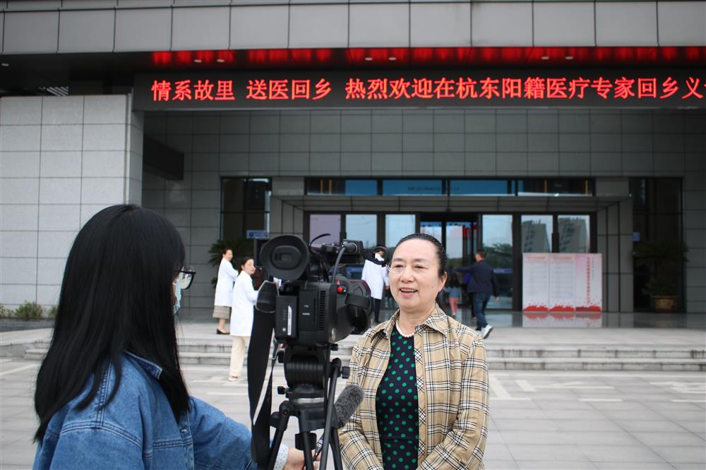 4月22日,李惠兰在开幕仪式后接受东阳电视台采访