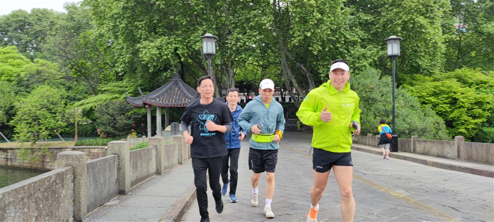 4月22日早上,杭州市东阳商会举行环西湖跑步活动