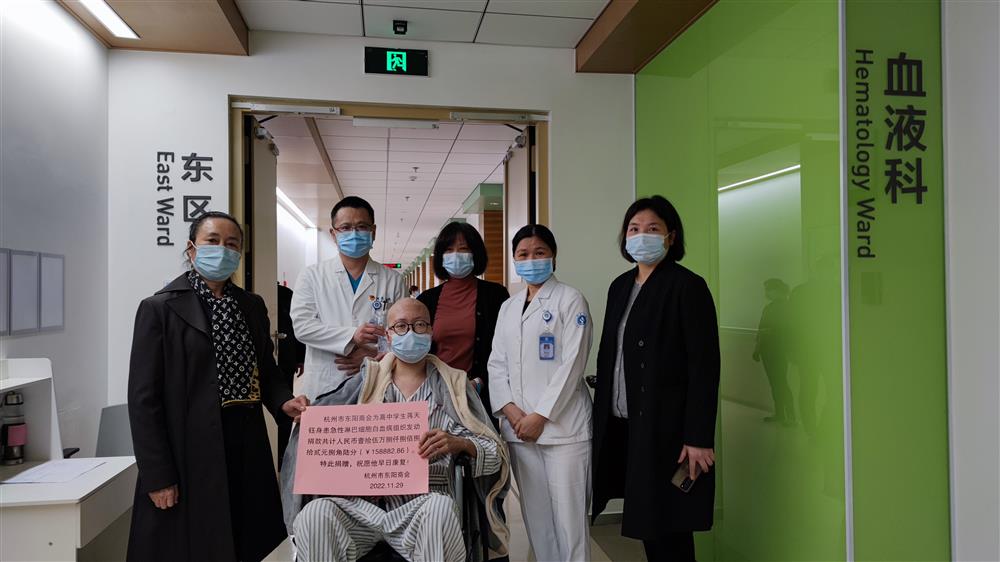 11月29日下午,秘书处代表商会到病区看望东阳学生小蒋,并将募集到的爱心款15.88万元送到家属手中