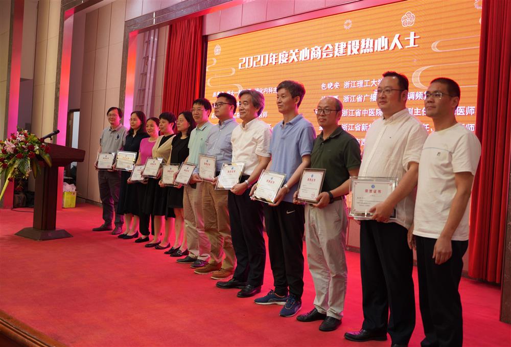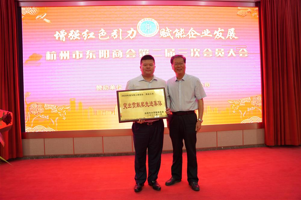 大会对2020年度的先进单位和先进个人进行了表彰。1、中天控股集团等16家单位获得“抗击新冠肺炎疫情突出贡献奖”,由东阳市乡贤联谊总会会长王正明和杭州东阳人联谊会会长杜德荣为代表们颁奖;2、花园集团等22家单位获得“2020年度先进会员单位”,由会长楼永良和执行会长何向全颁发奖牌;3、杭州电魂网络科技股份有限公司董事长、商会执行会长胡建平对获得“2020年度关心商会建设热心人士”的厉有名、胡智明等16位优秀乡贤颁奖;4、获得东阳市乡贤联谊总会的先进也在大会中进行了颁奖:①“2020年度先进个人”何向全、虞陆平等6位、②“2020年度突出贡献奖先进集体”接受东阳市乡贤联谊总会会长王正明颁发奖牌;③东阳市委副书记、市长楼琅坚分别对获得“2020年度突出贡献奖先进个人”的浙江筑工科技有限公司董事长杜德韩和杭州千芝雅卫生用品有限公司董事长吴跃进行颁奖。获奖单位和个人乐于担当、无私奉献,为杭州和东阳的经济建设、社会发展作出了积极贡献,受到嘉奖,实至名归。