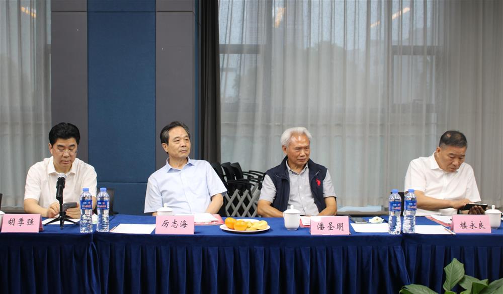 9月15日下午,杭州市东阳商会会长跨界学习交流会在常务副会长单位康恩贝集团会议室举行。会议特别邀请了省人大常委会原副主任厉志海、原省国土资源厅副厅长巡视员潘圣明、中国电信浙江分公司原总经理卢耀辉等领导与会指导,商会名誉会长、康恩贝集团董事长胡季强、商会会长、中天控股集团董事长楼永良等25位会长参加活动。会议由秘书长李惠兰主持。