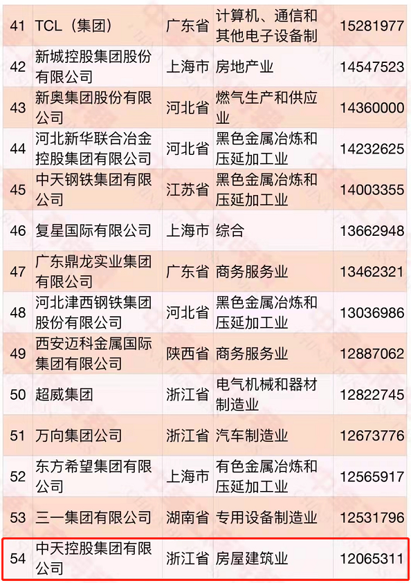 9月25日,全国工商联发布了“2021中国民营企业500强”榜单。今年是全国工商联连续组织开展的第23次上规模民营企业调研,共有5785家年营业收入5亿元以上的企业参加。令人欣喜的是,杭州市东阳商会会长单位中天控股集团有限公司以营业收入(1206.53亿元)位列第54强、常务副会长单位花团集团有限公司(326.76亿元)位列第321强。在2020年面对复杂严峻的形势和新冠肺炎疫情的严重冲击下,两家会长单位能取得如此骄人的业绩,不仅是杭州市东阳商会的骄傲,更是东阳人的骄傲!