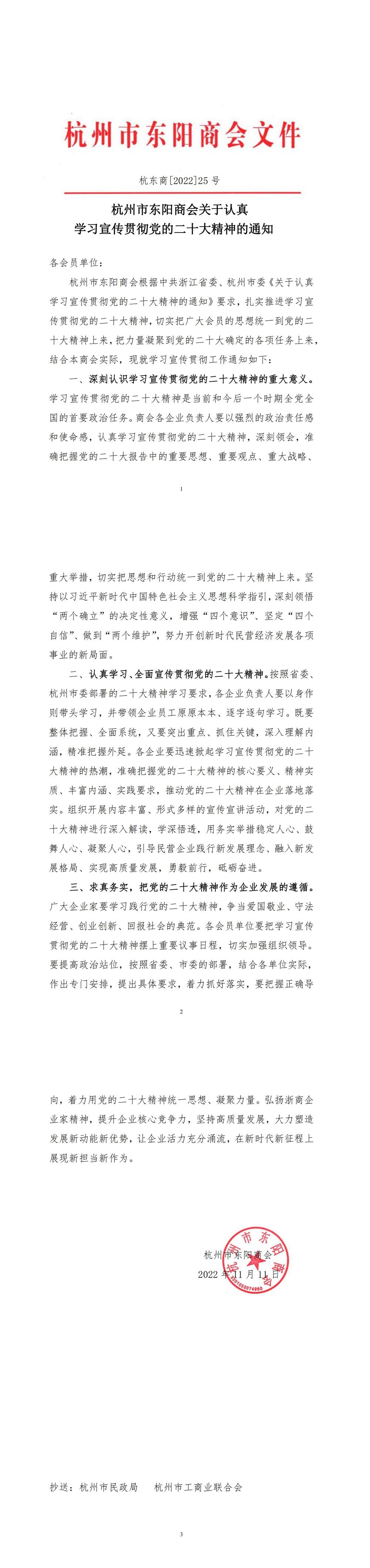 杭州市东阳商会关于认真学习宣传贯彻党的二十大精神的通知