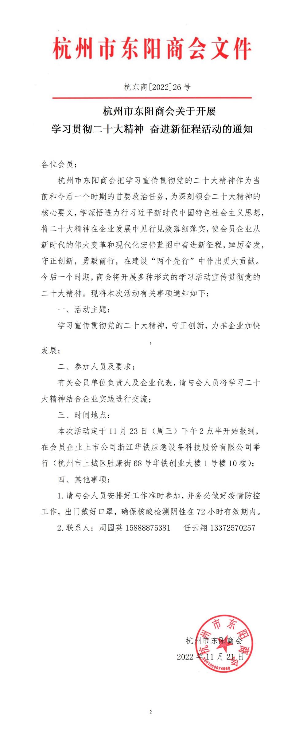 杭州市东阳商会关于开展学习贯彻二十大精神 奋进新征程活动的通知