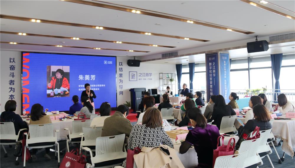 之江商学、之江百人会执行秘书长孙光英介绍之江商学基本情况:之江商学以中国最大最有影响力的创新力量——浙商为背景,成立于2018年5月,由传化集团董事长徐冠巨任院长、华立集团董事长汪力成任总教练、浙江省金融办原副主任包纯田任学术委员会主任、中南控股集团董事局主席吴建荣等15位著名浙商企业家、投资人核心发起,并联合近 100 家上市公司掌门人共同发起成立。之江商学以“成就数字经济领跑者”为宗旨,以培养上市公司为目标,深度陪跑企业成长,通过商学训战、数字化工具、创业陪跑、产学研政资源嫁接、投融资路演、供应链共享等,致力于为创新创业型企业成长和区域产业升级提供加速服务。主要提供七项赋能:产业资源对接、上市规划辅导、投融资好机会、科技项目申报、打通政商人脉、“学投联动”共成长、同学资源共享。商学成长营每年一期,已成功举办了四期,本商会副会长朱美芳是第一期成长营学员,收获颇丰。