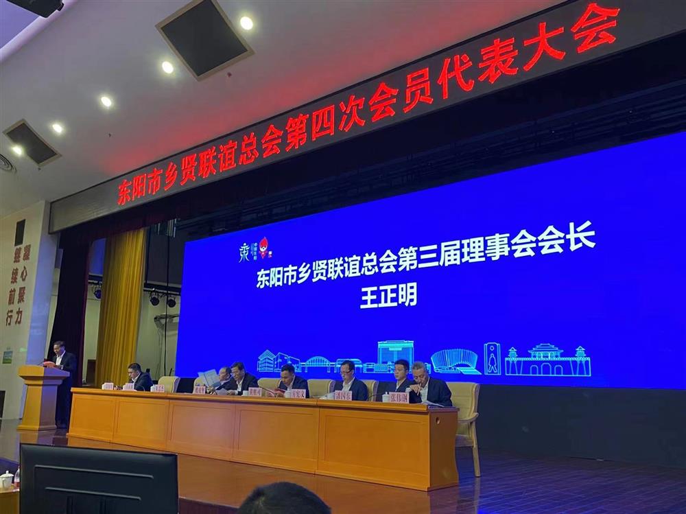 4月29日,东阳市乡贤联谊总会第四次会员代表大会在市行政中心举行,市委书记楼琅坚、市长黄胜可、人大常委会主任朱志杰、政协主席方宪文、市委副书记潘国东、常务副市长郭锦明、统战部长张伟钢等领导出席大会,来自海内外的东阳乡贤汇聚一堂,同叙桑梓情谊,共谋家乡发展。杭州市东阳商会代表浙江筑工科技董事长杜德韩、三方建设董事长吴祖跃、钱江美术馆馆长张向中、杭州晶索建材董事长卜伟荣、浙江太学科技董事长戚甘红及秘书处李惠兰、周园英7人参加。