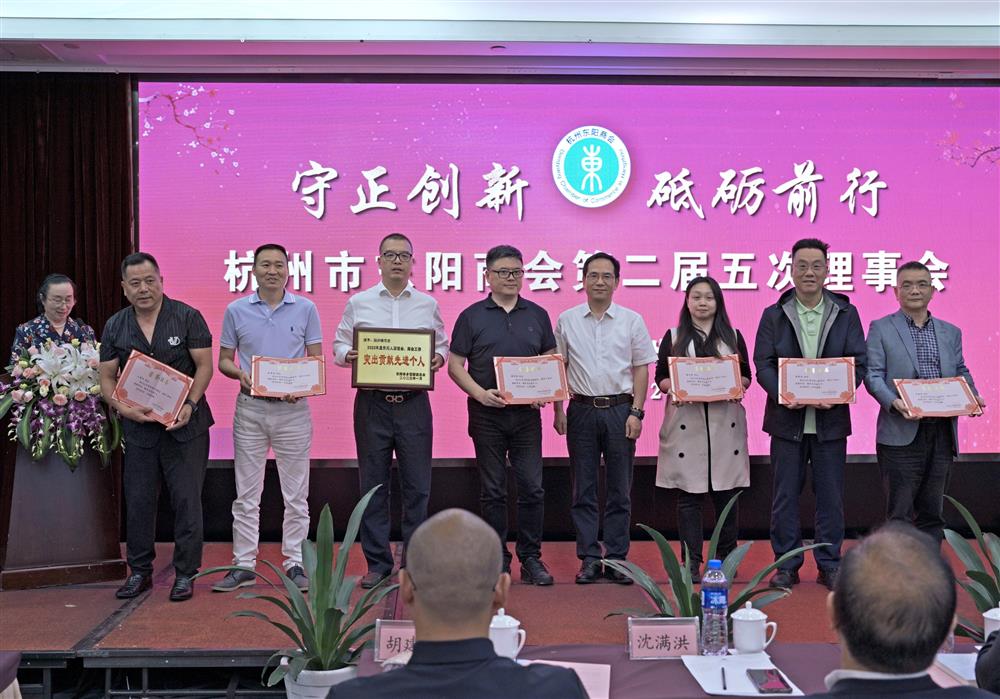 5月22日,常务副会长申屠祖斌对荣获东阳市乡贤联谊总会的2022年度突出贡献先进个人和先进个人颁奖