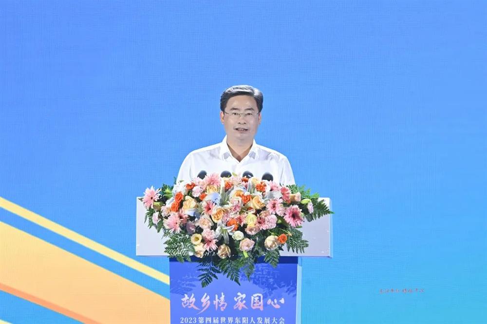 金华市委常委、宣传部部长吕伟强代表金华市委、市政府对第四届世界东阳人发展大会召开表示热烈祝贺。他指出,东阳经济社会发展成果显著,在去年金华市年度考核中获得了第一名。成绩的背后,是东阳各领域各项工作领先,经济运行稳中有进,改革创新扎实有力,城乡环境焕然一新,生活品质持续提升,社会治理和谐安宁。这些成绩的取得,同样离不开广大乡贤的努力和奉献。月是故乡明,情是故乡浓,真诚希望广大乡贤一如既往地关心支持东阳发展、关心支持金华发展。