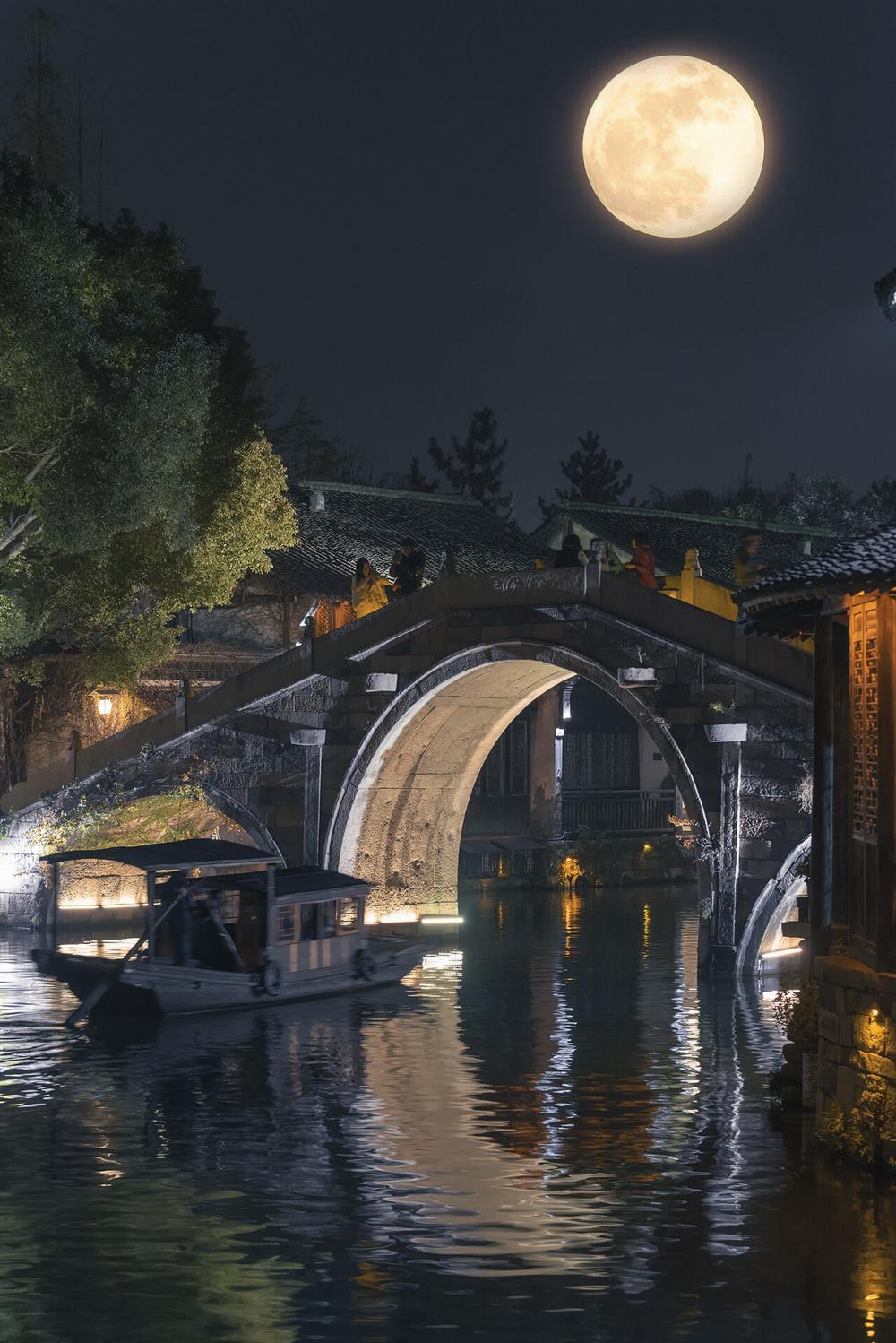 “走”月亮习俗,源自江南老传统,人们结伴提灯、月下畅游、参与文艺活动、走过三座桥、祈愿团圆安康。