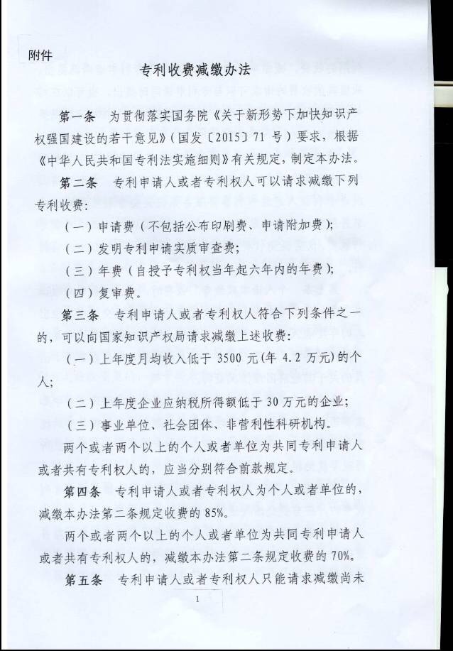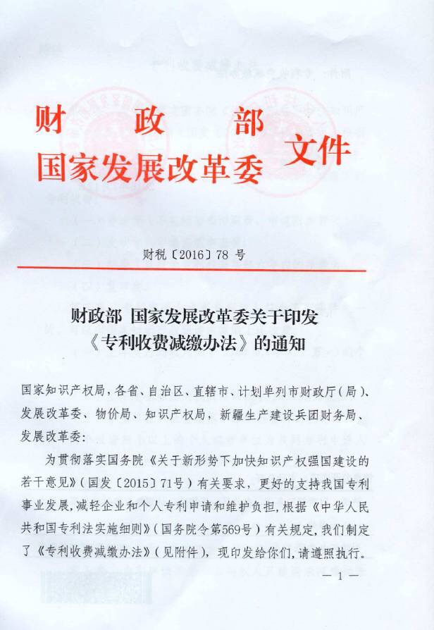 财政部 国家发展改革委关于印发《专利收费减缴办法》的通知
