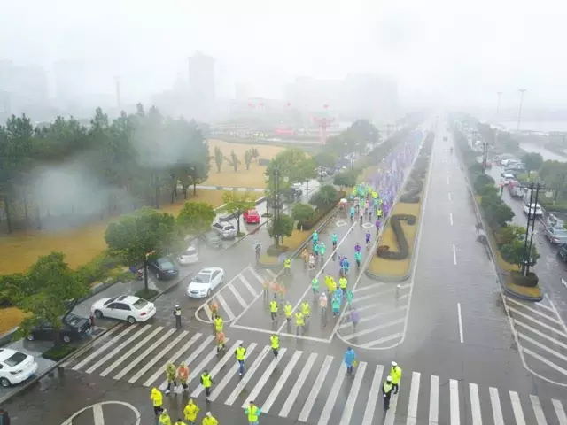 劲跑人员:2500名中天健儿+100名东阳长跑协会运动员