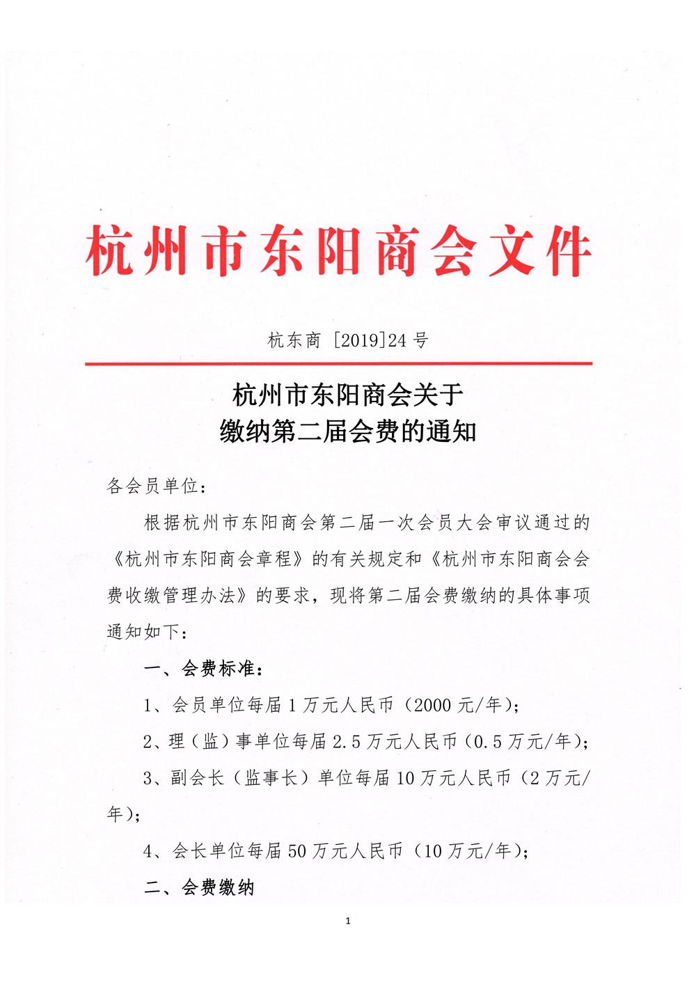 杭州市东阳商会关于缴纳第二届会费的通知