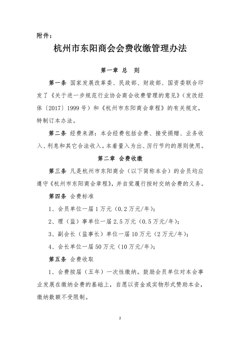 杭州市东阳商会关于印发《杭州市东阳商会会费收缴管理办法》的通知