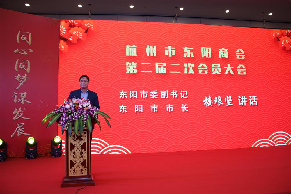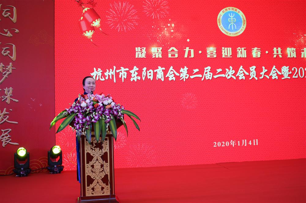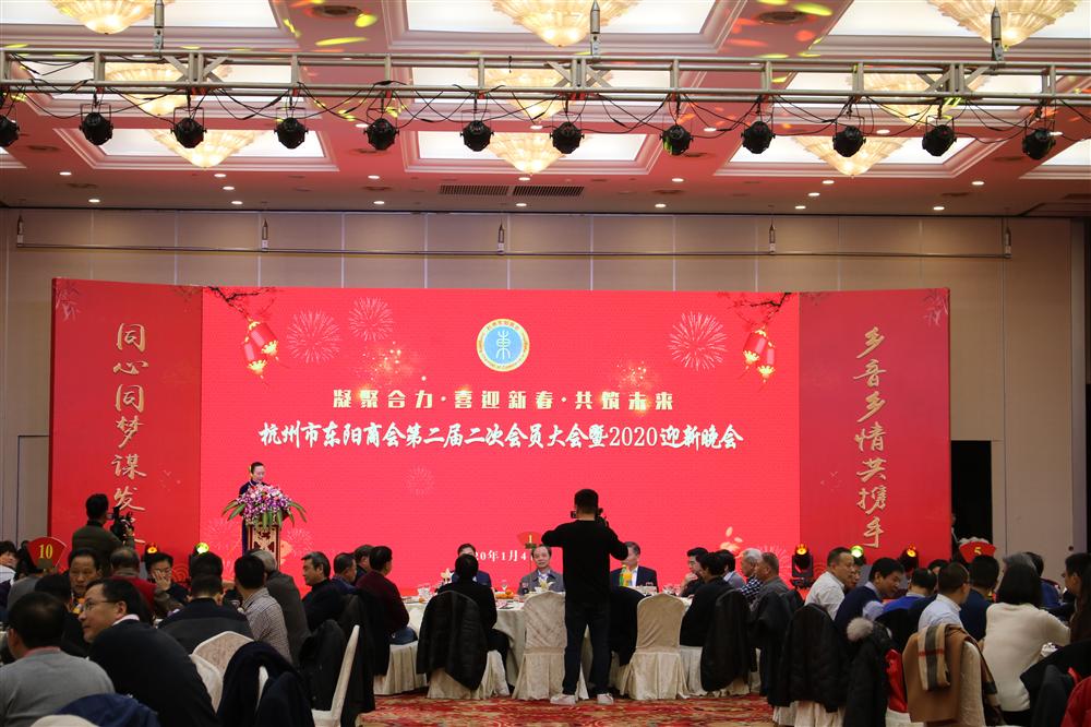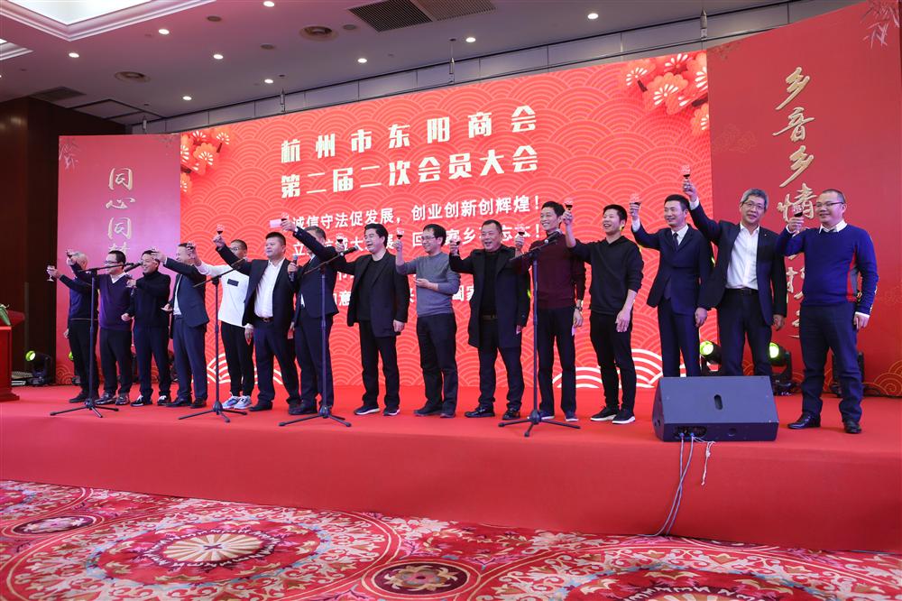 东阳市委副书记、市长楼琅坚对杭州市东阳商会2019年取得的成绩表示充分肯定,这也是他上任以来第一次参加杭州市东阳商会组织的活动。他指出,近年来,杭州市东阳商会坚持以乡情为根、以服务为本,很好地发挥了身处省会的优势,以实际行动反哺家乡,充分体现了东阳人合力共赢、回报桑梓的团结情、家乡情。同时也希望杭州市东阳商会继续秉持“服务企业、回报家乡”的办会宗旨,持续凝聚乡情友谊,打造东阳与杭州两地高质量的交流合作平台,为回报家乡发展作出更大贡献。东阳市委市政府将一如既往地支持商会发展,真正成为商会和广大在外乡贤的坚强后盾。